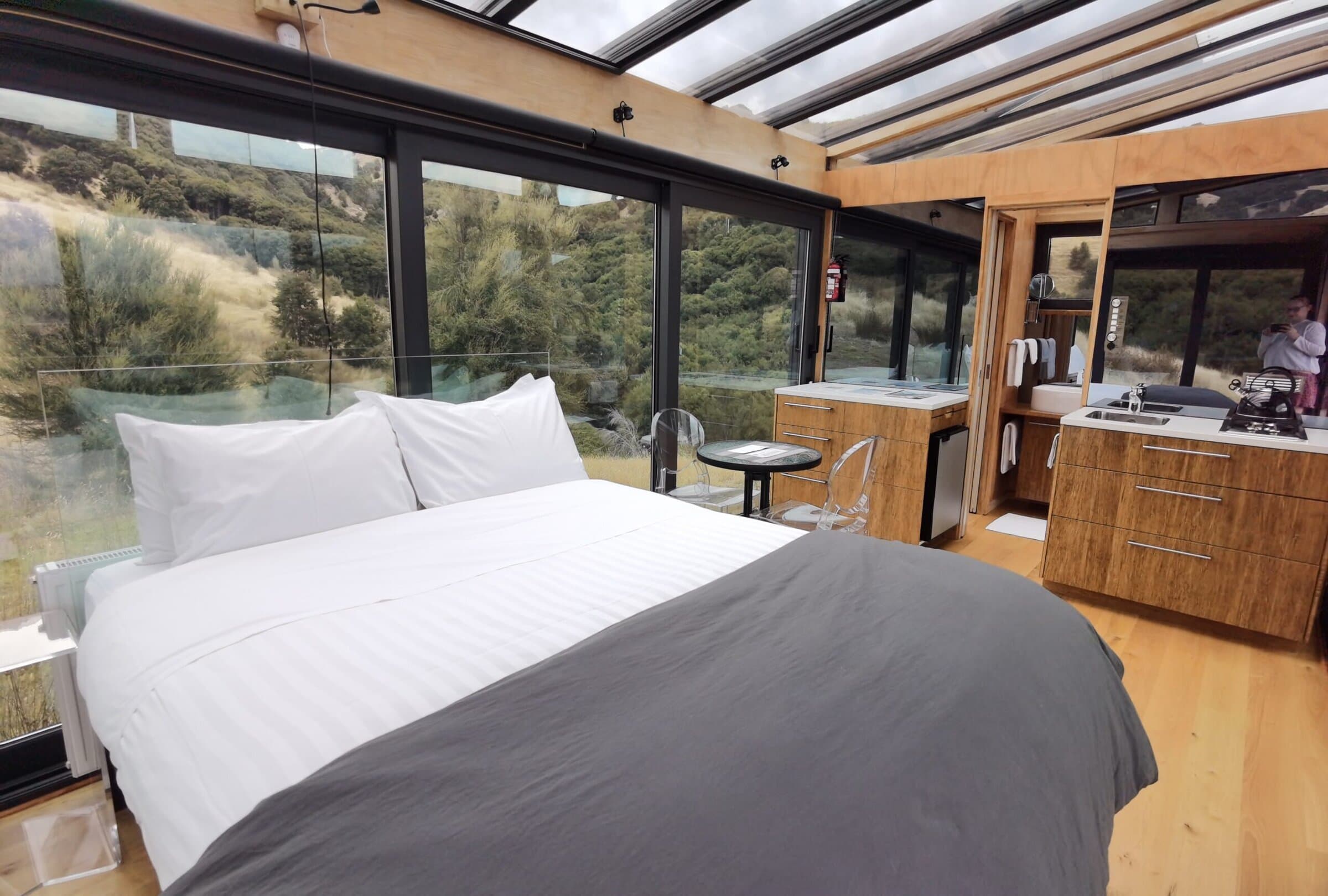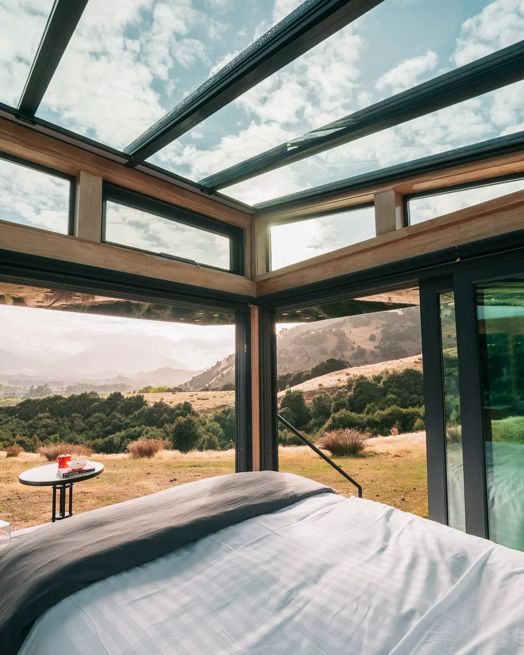 These all-glass eco-cabins are scattered across remote farms throughout New Zealand, strategically positioned for peace and privacy and designed to blend seamlessly into the countryside. Stargazing from bed? Perfect. Sunrise from the shower? Love it.