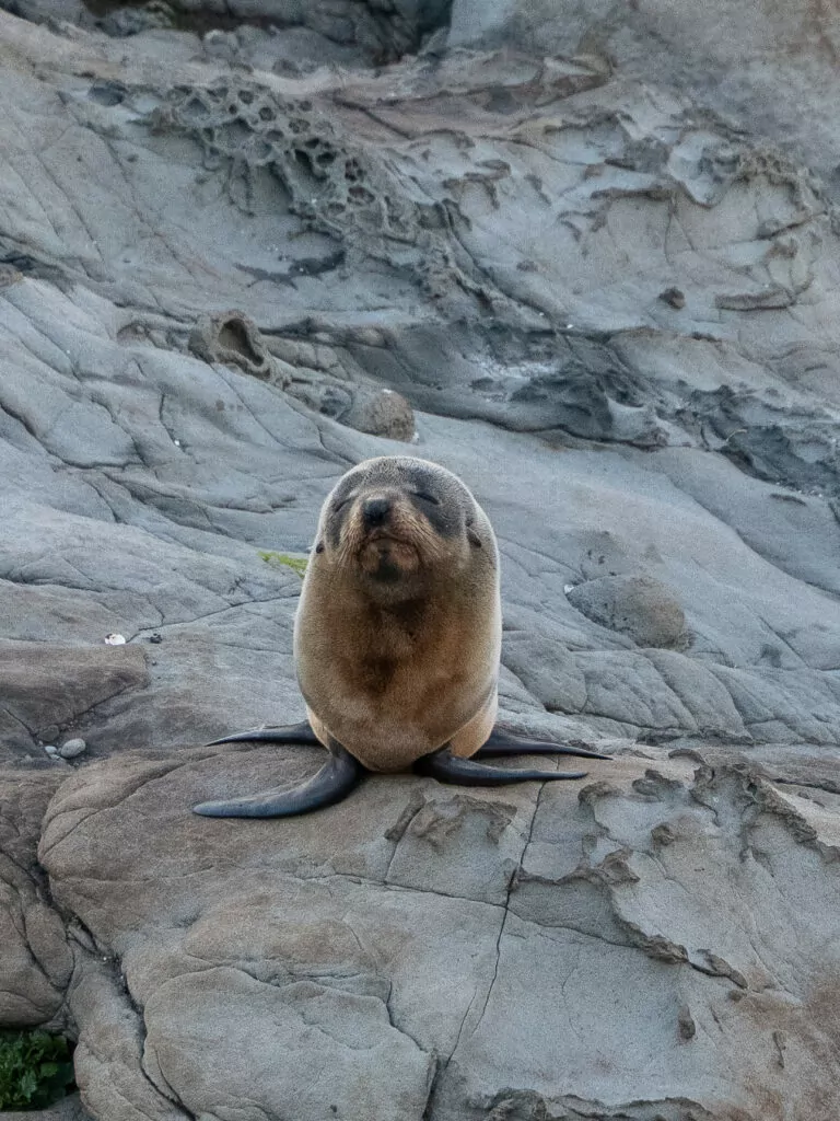 My favourite place for a seal-watching session is Ohau Point Seal Colony, it’s a 20-25 minute drive north of town with a safe stopping area and a paved walkway that overlooks the colony.