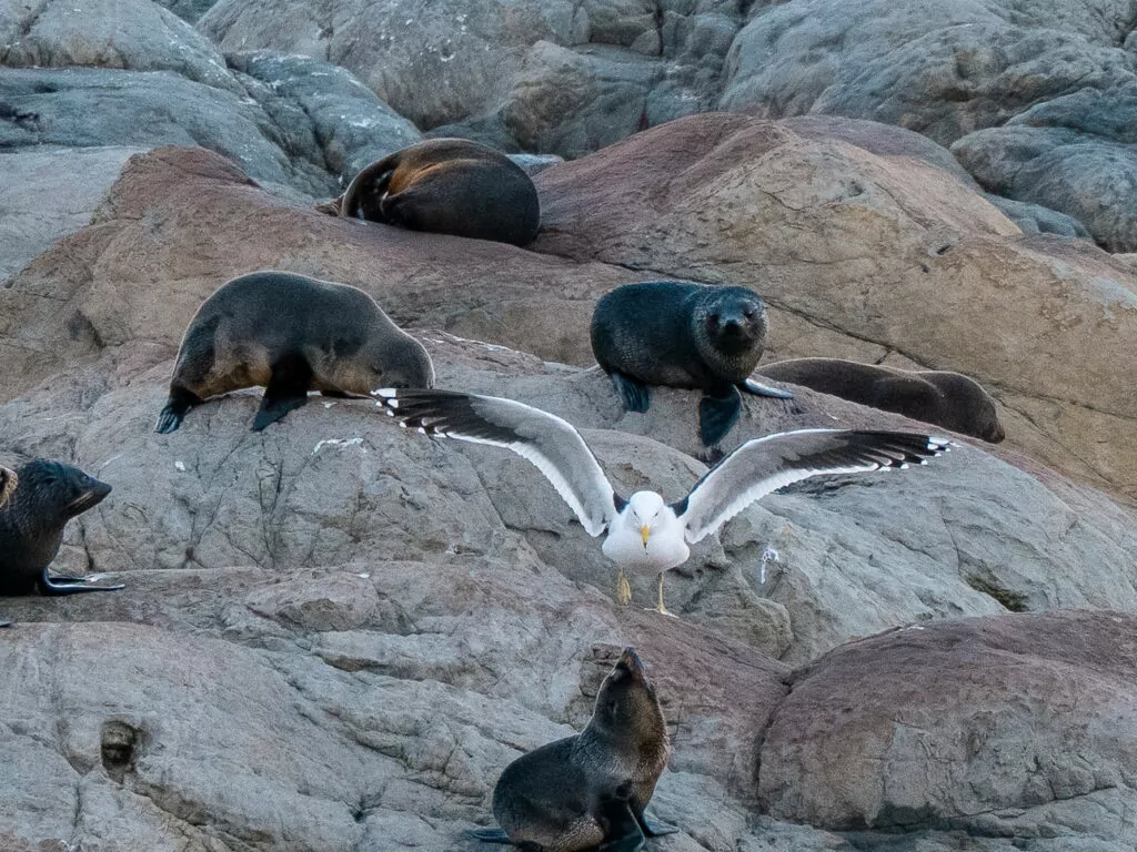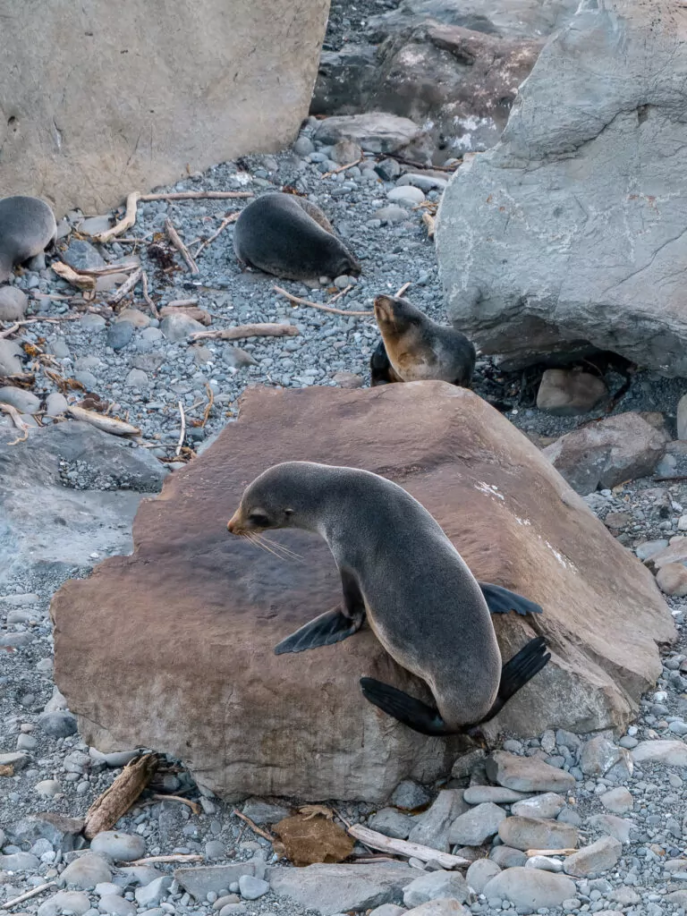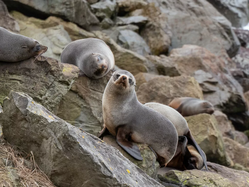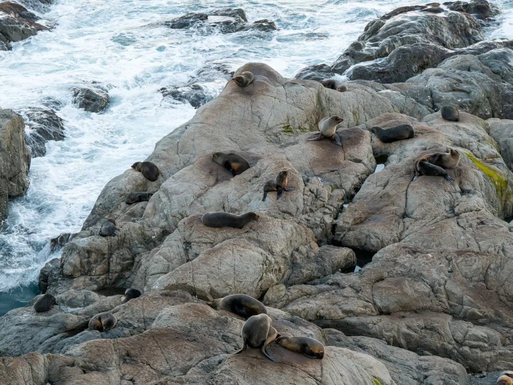 Kekeno (New Zealand fur seals) are everywhere along the Kaikōura coastline, with loads of easy viewpoints where you can see young pups splashing around in the rockpools while the adults snooze nearby.