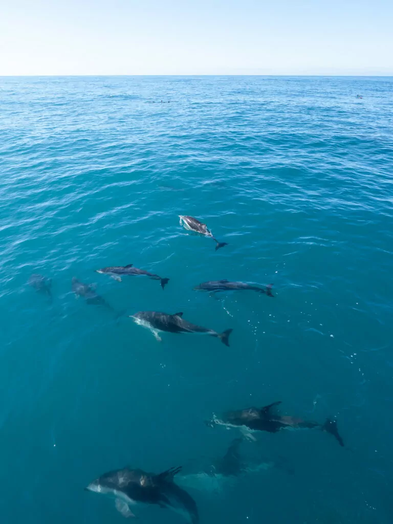 These dolphins are wild animals and can choose to glide right past the floating humans if they wish, but duskies in particular are known for being curious and incredibly acrobatic, so most of the time you’ll have at least a handful of them getting right in your face. They’ll circle you at lightning speed (try and keep up with them!), launch into aerial spins and steal your heart. A true pinch-me moment, you really have to experience it for yourself.
