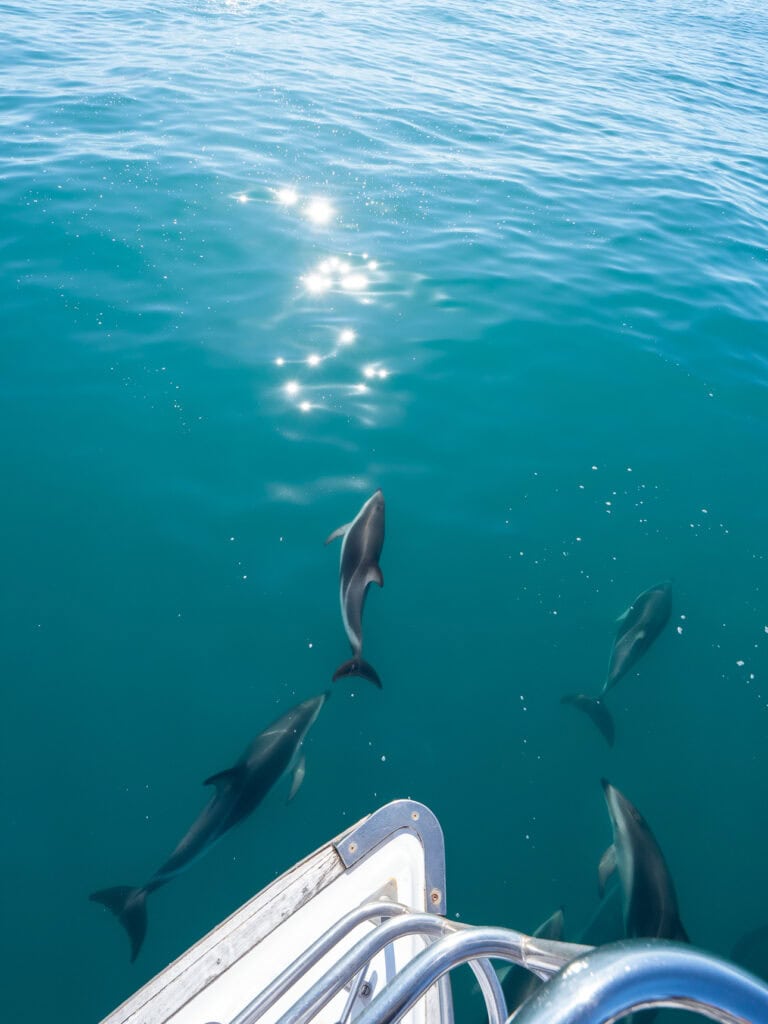 Just like the whales, dolphin swimming in Kaikōura is strictly regulated to protect the resident dusky dolphins. All dolphin encounters are completely on the dolphins terms, they aren’t baited, chased or coerced in any way, they can swim straight past if they don’t want to engage (but often they want to play!).