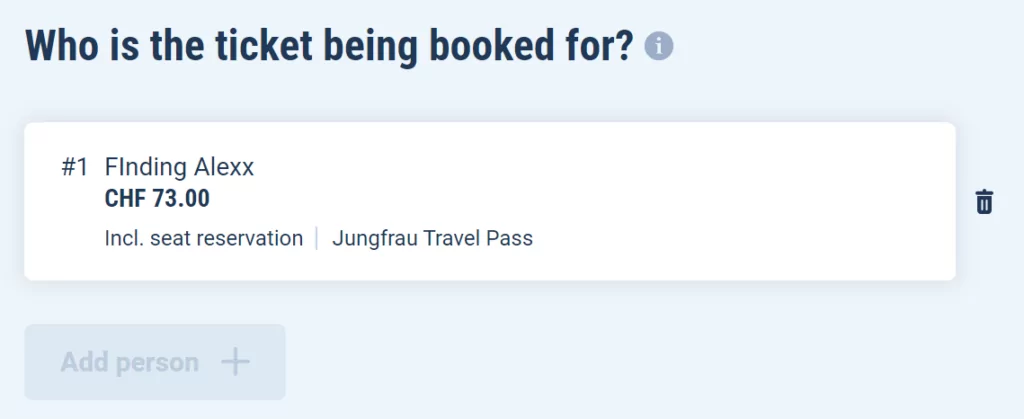 It’ll show you the price including the 10CHF seat reservation even at times where the reservation isn’t mandatory (which is why it’s showing 73CHF in the screenshot below instead of 63CHF), but you can remove this on the next page before checking out if you’re not visiting in peak season.